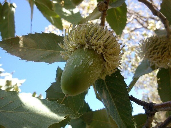 میوه تازهرسیده بلوط، در ابتدای پاییز مقداری شکرریزی دارد که باور عمومی در منطقه این است که برداشت این محصول و فراوری آن بهعنوان یک دارویی یا خوراکی، مفید است.