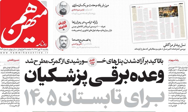 صفحات‌نخست‌روزنامه‌ها‌ی‌یکشنبه‌۲۰‌مهرماه