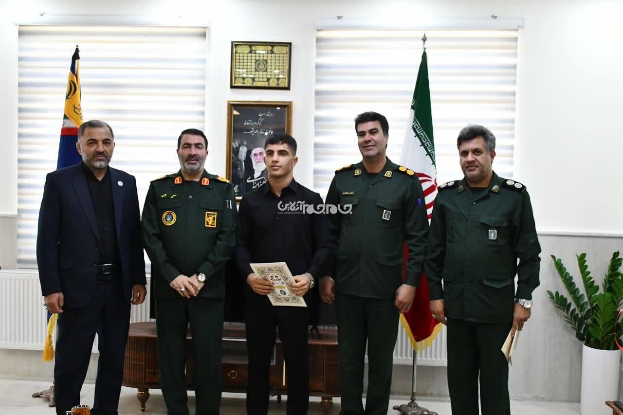 فرمانده سپاه فتح کهگیلویه و بویراحمد در پایان از مجتبی دیماد و مهرداد افتخاری که در مسابقات کشتی قهرمانی بسیج کشور مقام اول و سوم را کسب کردند با اهدای لوح سپاس تجلیل کرد.