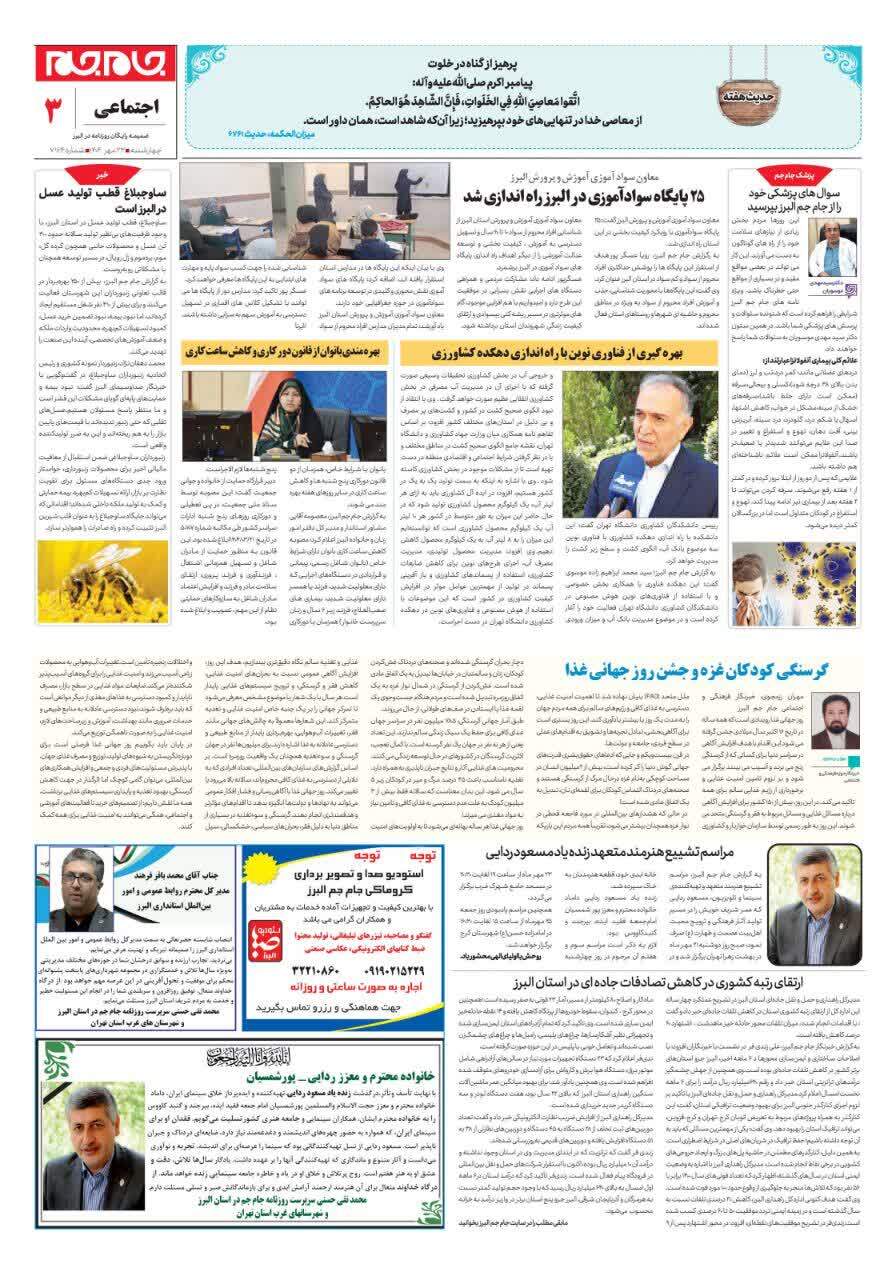 ویژه نامه جام جم البرز ۲۳ مهر ۱۴۰۴