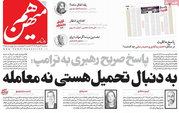 صفحات‌نخست‌روزنامه ها‌ی سه‌شنبه‌۲۹‌هرماه