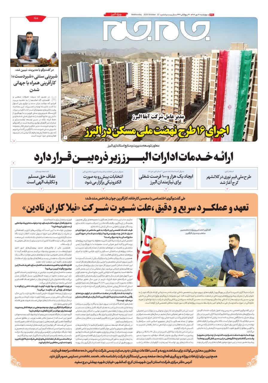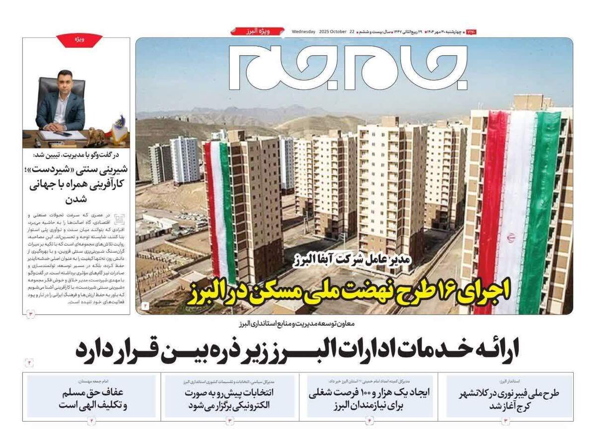 ویژه نامه جام جم البرز ۳۰ مهر ۱۴۰۴