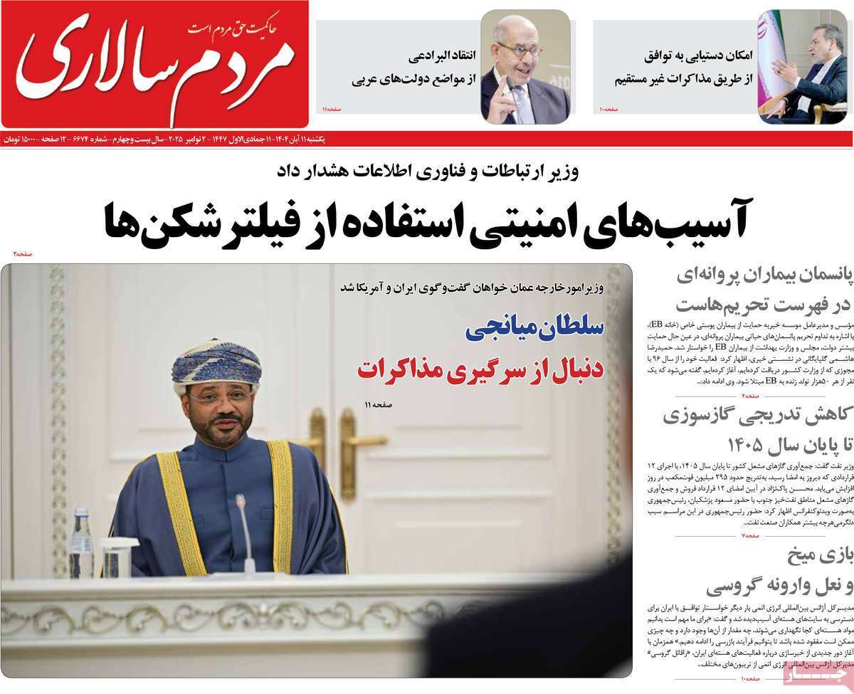 صفحات نخست روزنامه‌ها‌ی یکشنبه ۱۱آبانماه