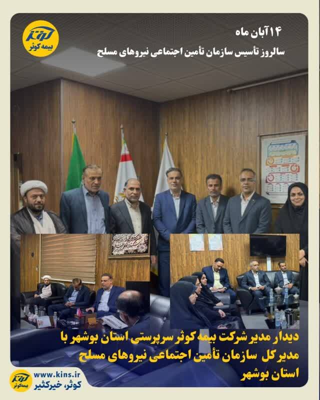 به گزارش جام جم و به نقل از روابط عمومی شرکت بیمه کوثر سرپرستی استان بوشهر محمد برزگری مدیر شرکت بیمه کوثر استان بوشهر در دیدار با مدیر کل محترم سازمان تامین اجتماعی نیروهای مسلح استان بوشهر در 14 آبان ماه سالروز تاسیس آن سازمان خاطر نشان کرد :چهاردهم آبان ماه، همزمان با فرارسیدن سالروز تأسیس سازمان تأمین اجتماعی نیروهای مسلح، در آستانهایام پرفیض و عزای فاطمیه قرار گرفته است. در این روزها که غم فقدان بانوی دو عالم، حضرت فاطمهی زهرا (سلام الله علیها) دلهایمان را میفشارد، بر خود لازم میدانم این مناسبت را بهانهای برای ارج نهادن به تلاشهای صادقانهی مدیران و کارکنان خدوم آن سازمان قرار دهم که همواره، چونان الگویی از ایثار و گذشت، مخلصانه در خدمت جامعهی بزرگ کارکنان نیروهای مسلح و پیشکسوتان عزیز هستند.