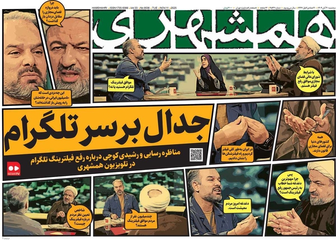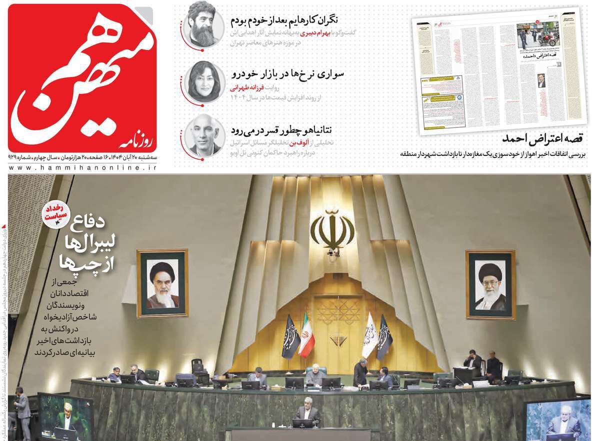 صفحات‌نخست‌روزنامه‌ها‌ی‌سه‌شنبه‌۲۰‌آبانماه