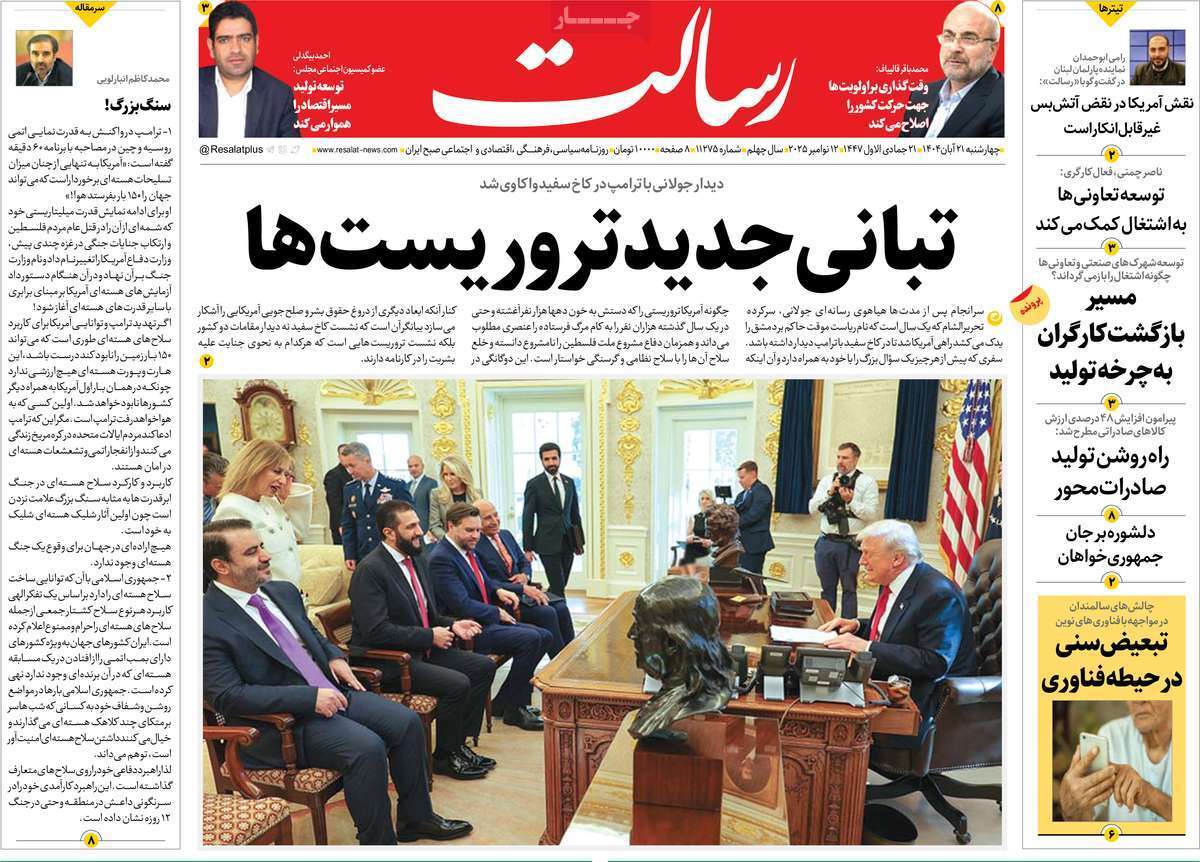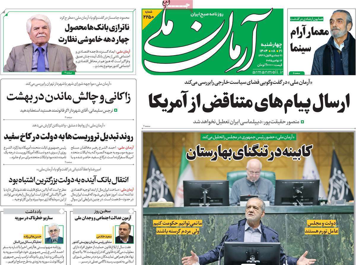 صفحات نخست روزنامه‌ها‌ی چهارشنبه ۲۱ آبانماه