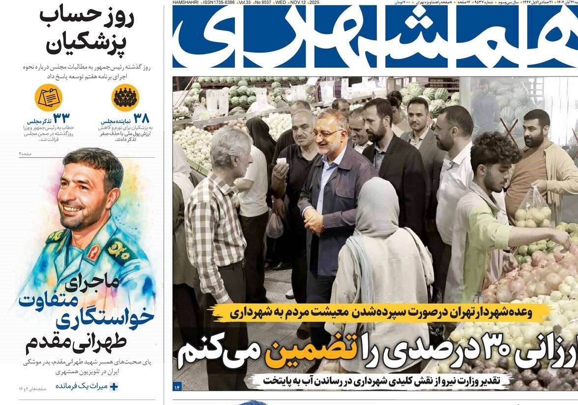 صفحات نخست روزنامه‌ها‌ی چهارشنبه ۲۰ آبانماه