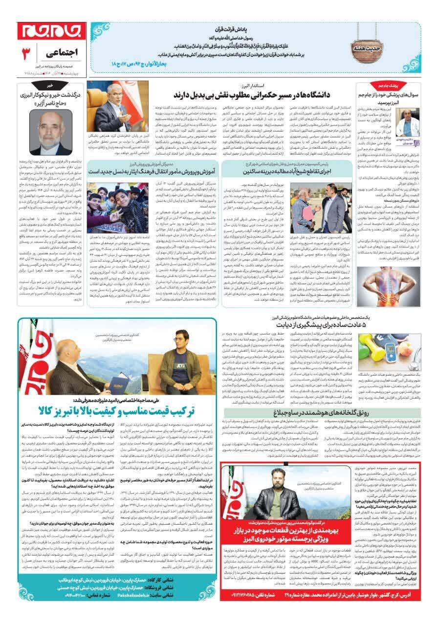 ویژه نامه جام جم البرز ۲۱ آبان ۱۴۰۴