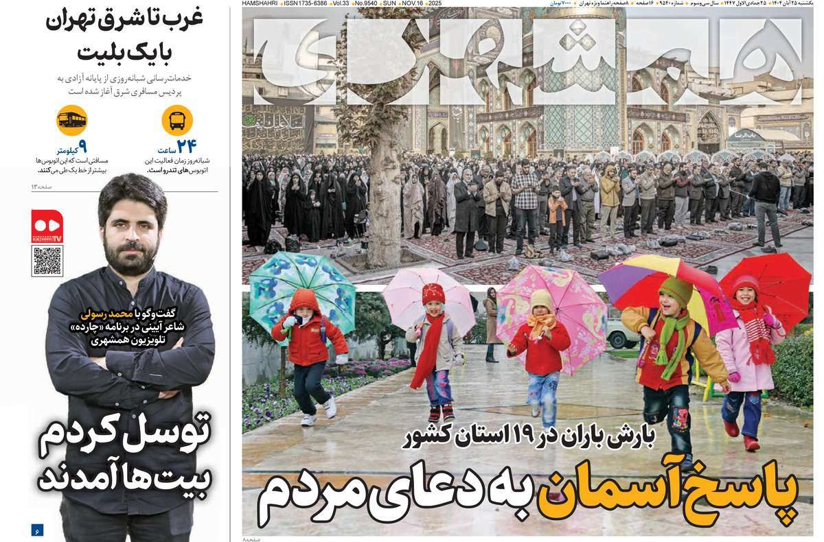صفحات نخست روزنامه ها‌ی یکشنبه۲۵آبانماه