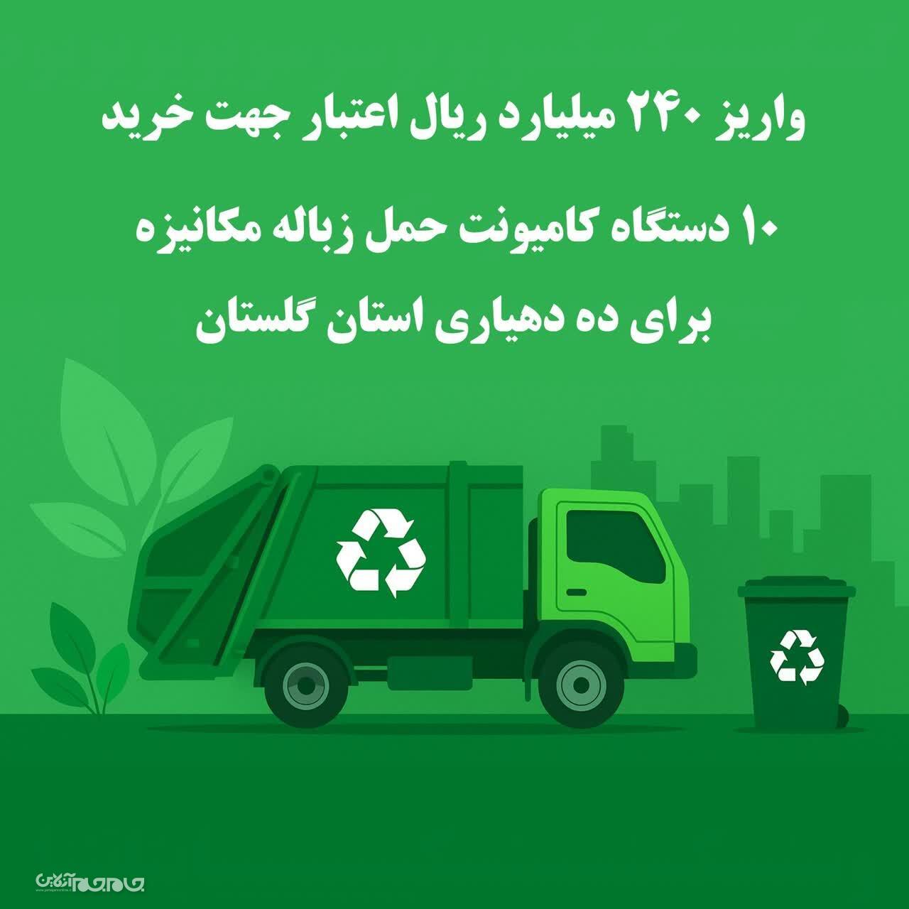 مدیرکل امور روستایی و شوراهای استانداری اظهار داشت: در این مرحله، با خرید ۱۰ دستگاه کامیونت حمل زباله مکانیزه برای دهیاری های گدم آباد، آق قیه، تقی آباد و آق آباد شهرستان گنبدکاووس، زنگیان شهرستان گرگان، صحنه سفلی و پیرواش سفلی شهرستان آق قلا، قورچای و ازدارتپه شهرستان آزادشهر و بالاجاده شهرستان کردکوی در استان گلستان موافقت گردیده است.