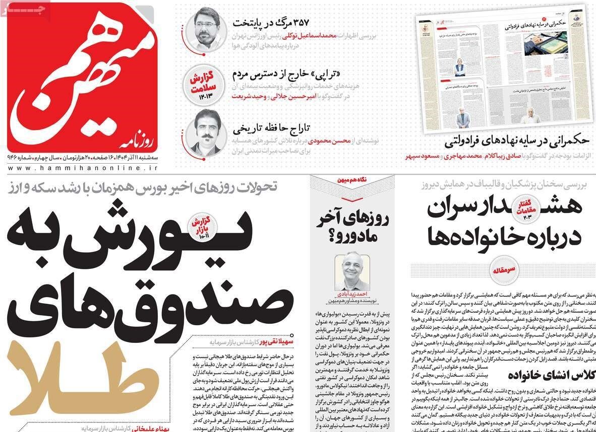 صفحات نخست روزنامه‌ها‌ی سه‌شنبه ۱۱آذرماه