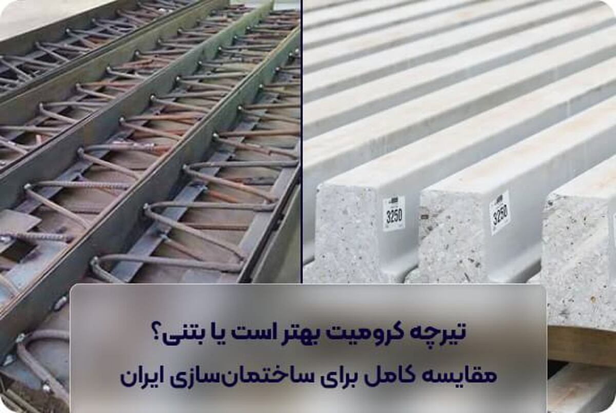 پاسخ قطعی وجود ندارد و بستگی به پروژه دارد. اگر اسکلت فلزی دارید و سرعت و وزن کم اهمیت است: تیرچه کرومیت بهتر است. اگر اسکلت بتنی دارید و بودجه محدود: تیرچه بتنی (به ویژه پیشتنیده) انتخاب بهتری است. در شرایط زلزلهخیز ایران، کرومیت کمی برتری دارد.