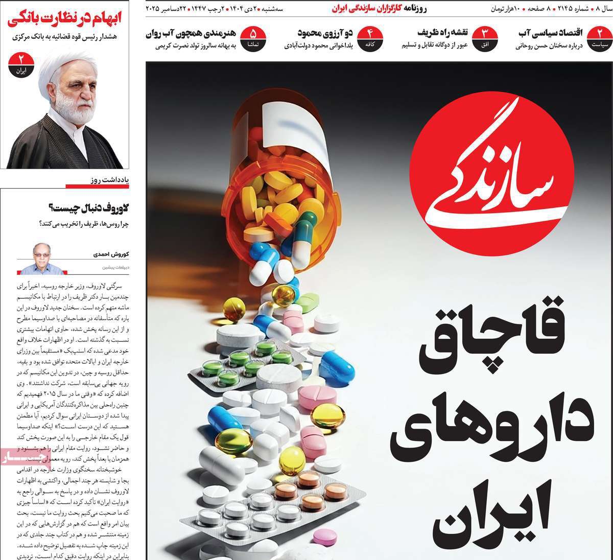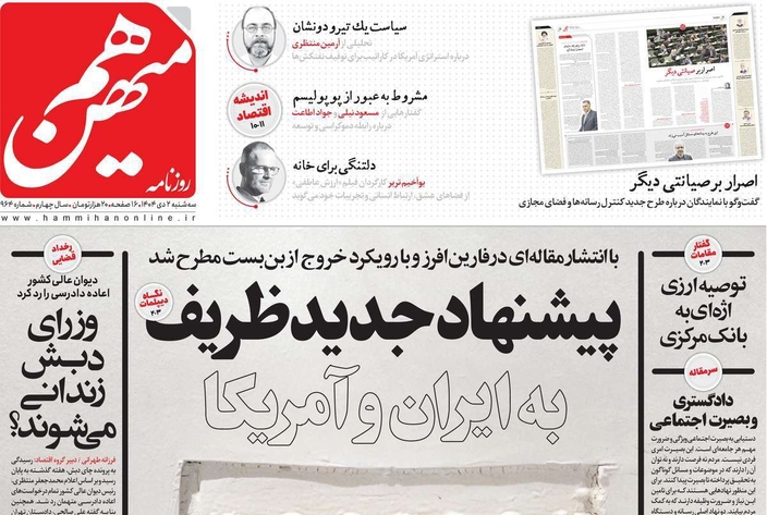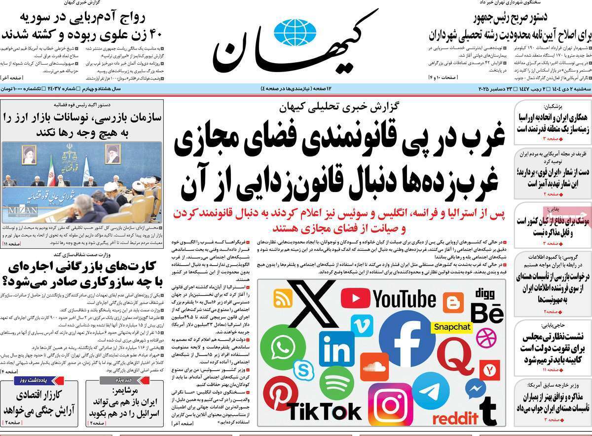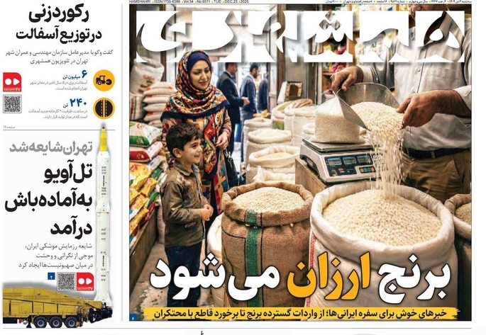 صفحات نخست روزنامه ها‌ی سه‌شنبه ۲‌دی‌ماه