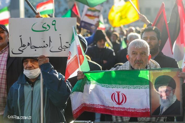 مراسم بزرگداشت حماسه نهم دی، عصر سه شنبه (۹ دی ۱۴۰۴) با حضور قشرهای مختلف مردم در میدان امام حسین (ع) تهران برگزار شد. عکاس: سعید رضوی