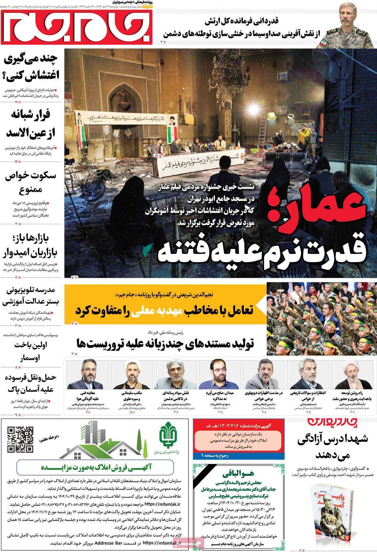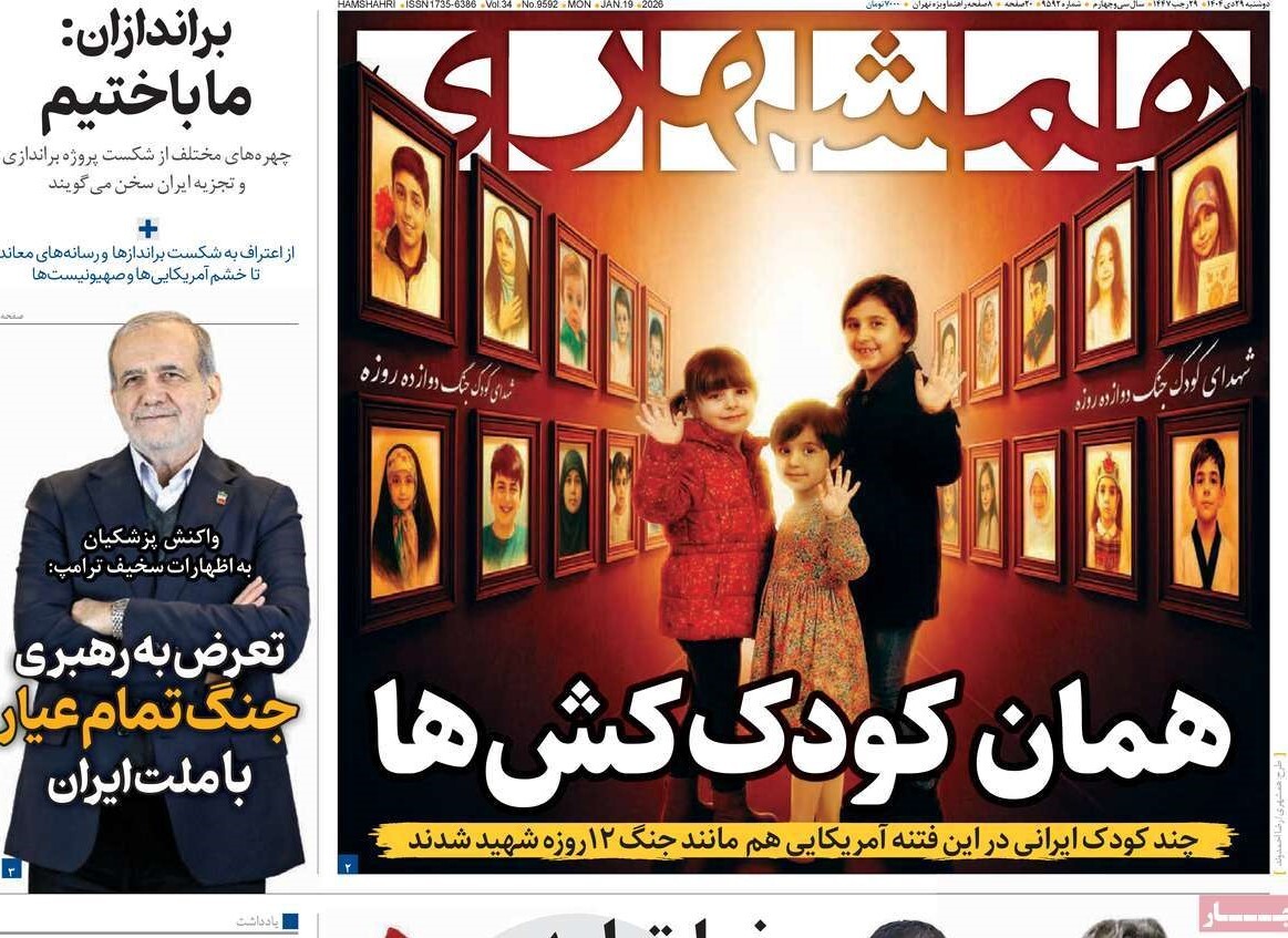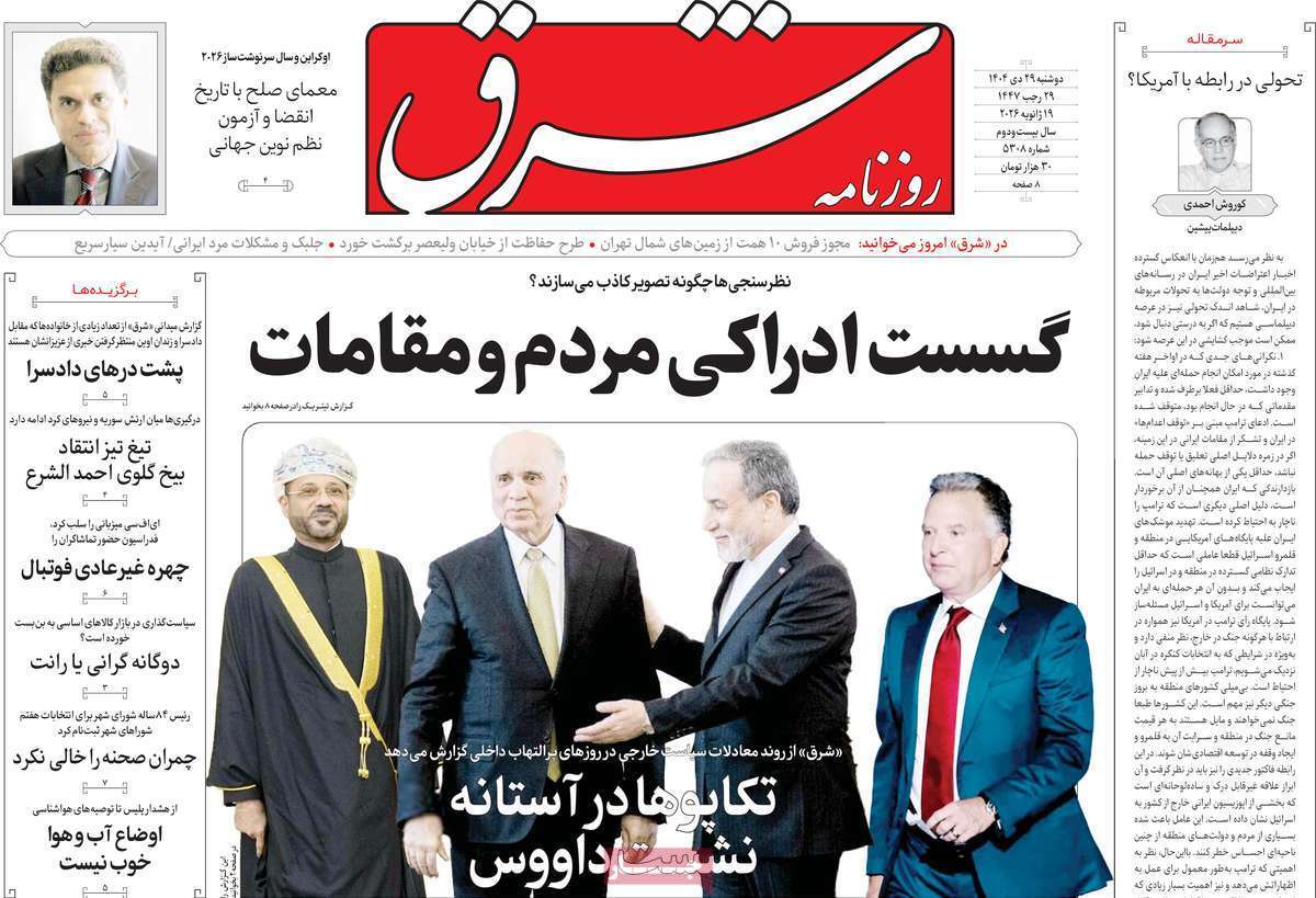 صفحات نخست روزنامه ها‌ی دوشنبه ۲۹ دی‌ماه
