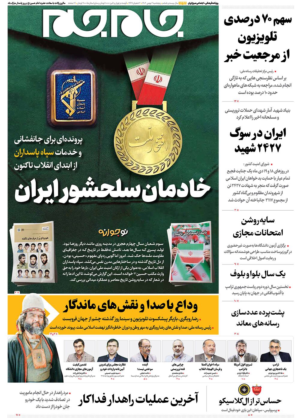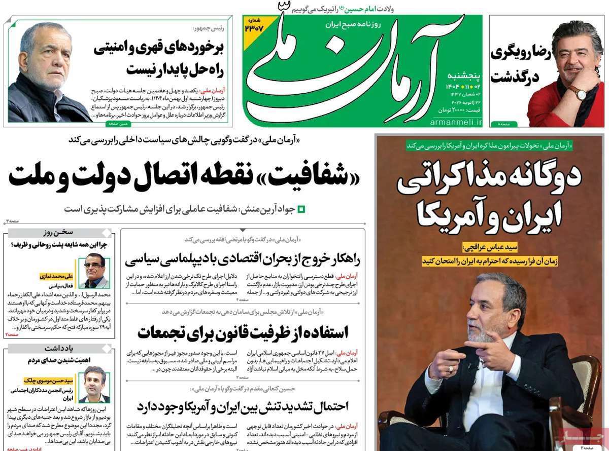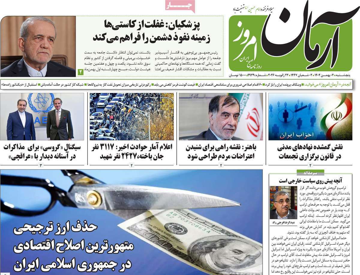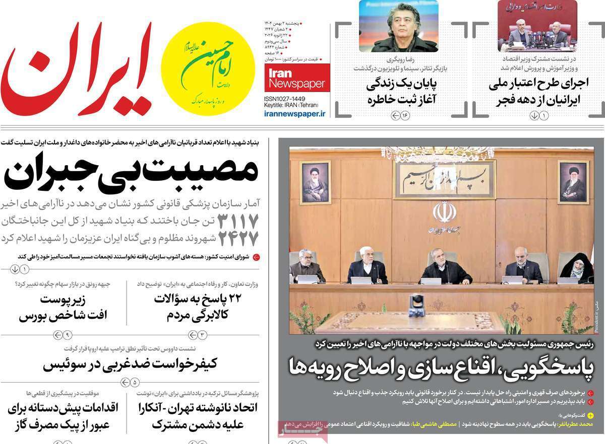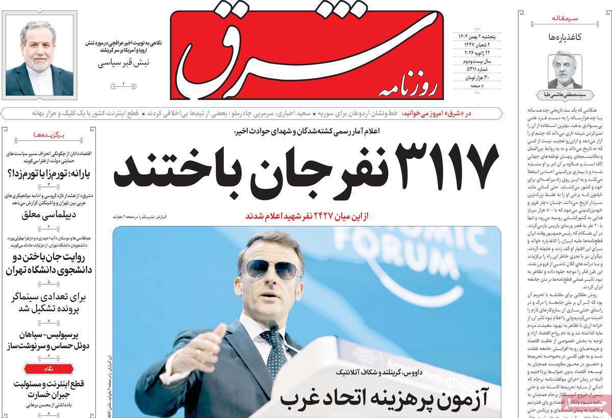 صفحات‌نخست‌روزنامه ها‌ی پنجشنبه‌۲ بهمن‌ماه