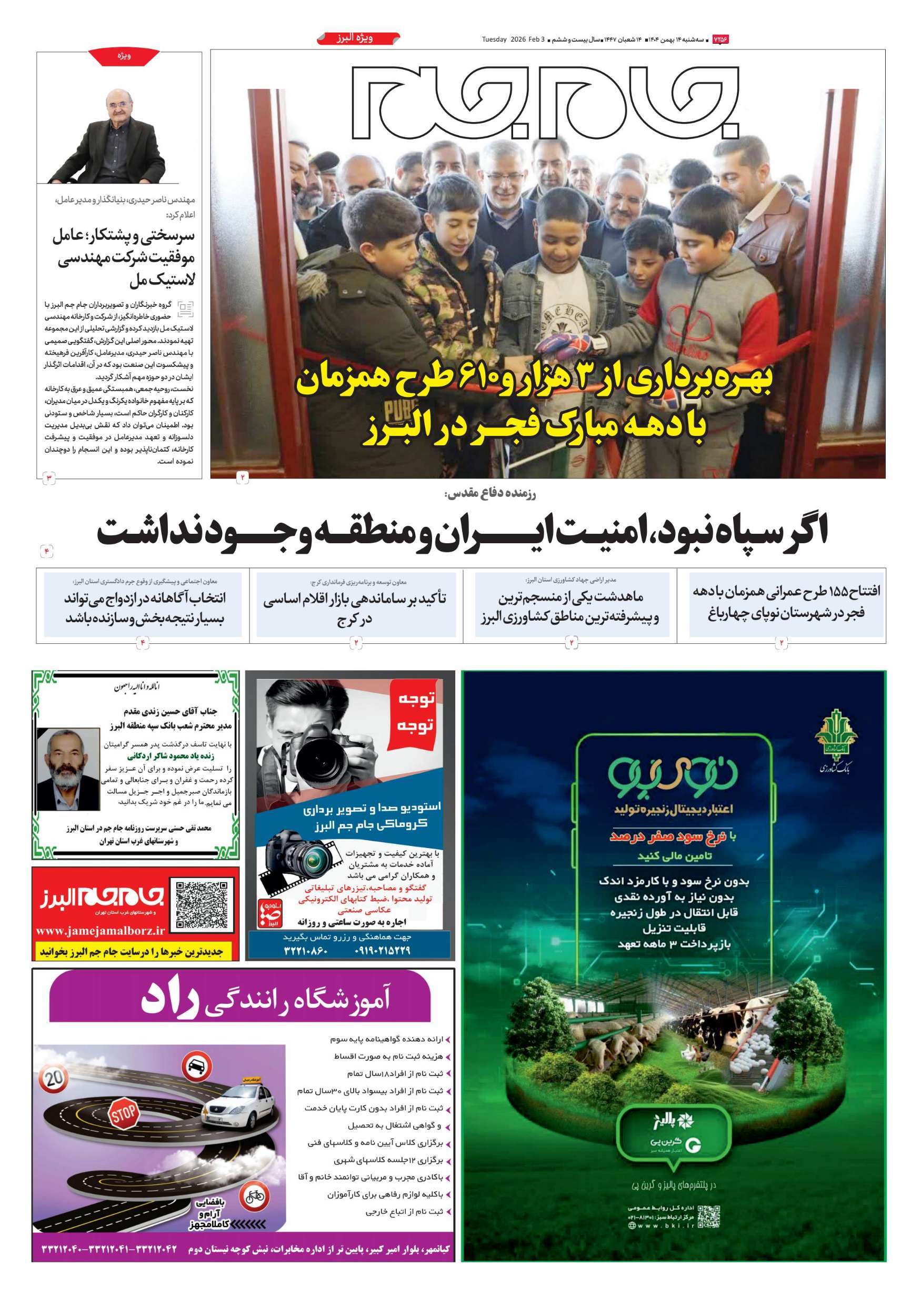ویژه نامه جام جم البرز ۱۴ بهمن ۱۴۰۴
