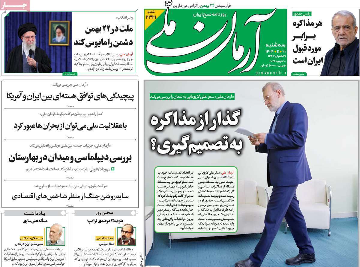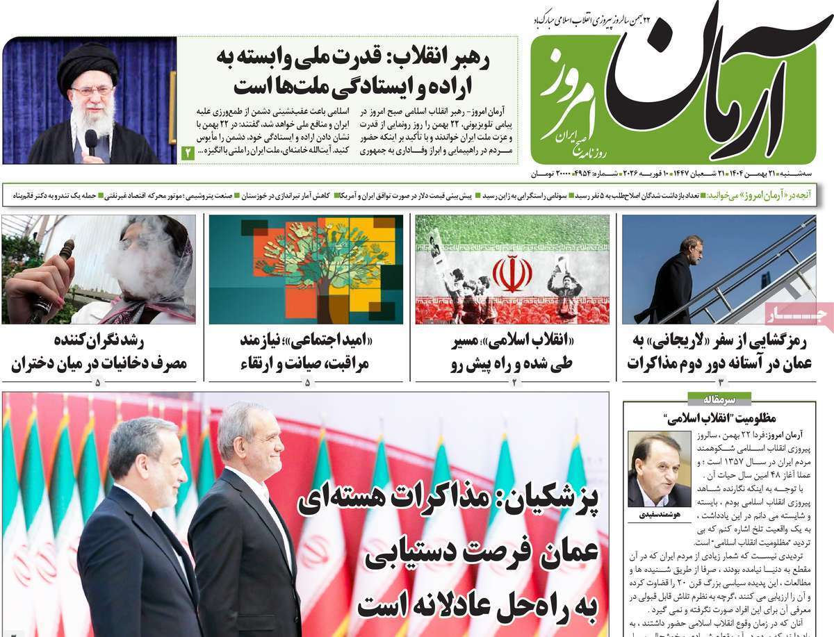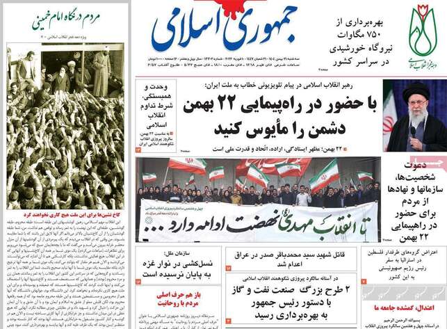 صفحات نخست روزنامه ها‌ی سه‌شنبه ۲۱ بهمن‌ماه