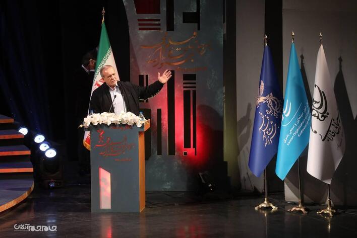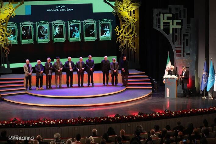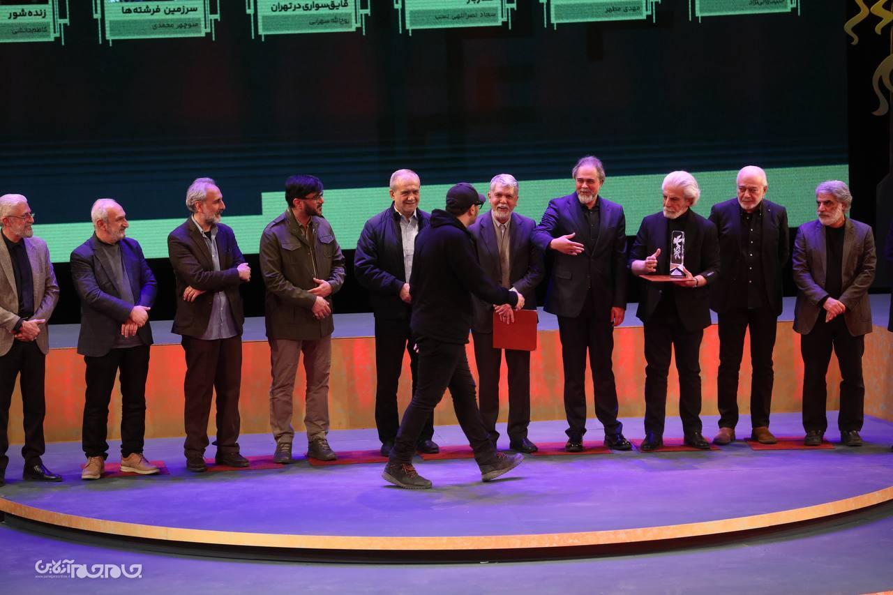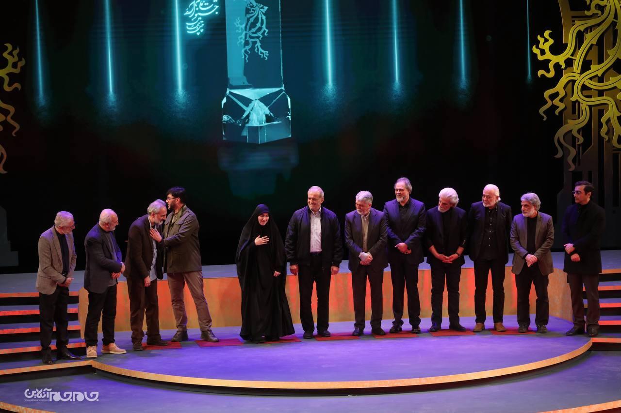 مراسم اختتامیه چهل‌وچهارمین جشنواره ملی فیلم فجر، شامگاه چهارشنبه ۲۲ بهمن ۱۴۰۴ با حضور مسعود پزشکیان رئیس جمهور و با تقدیر از برگزیدگان بخش های مختلف در تالار وحدت برگزار شد.عکاس: مجید آزاد