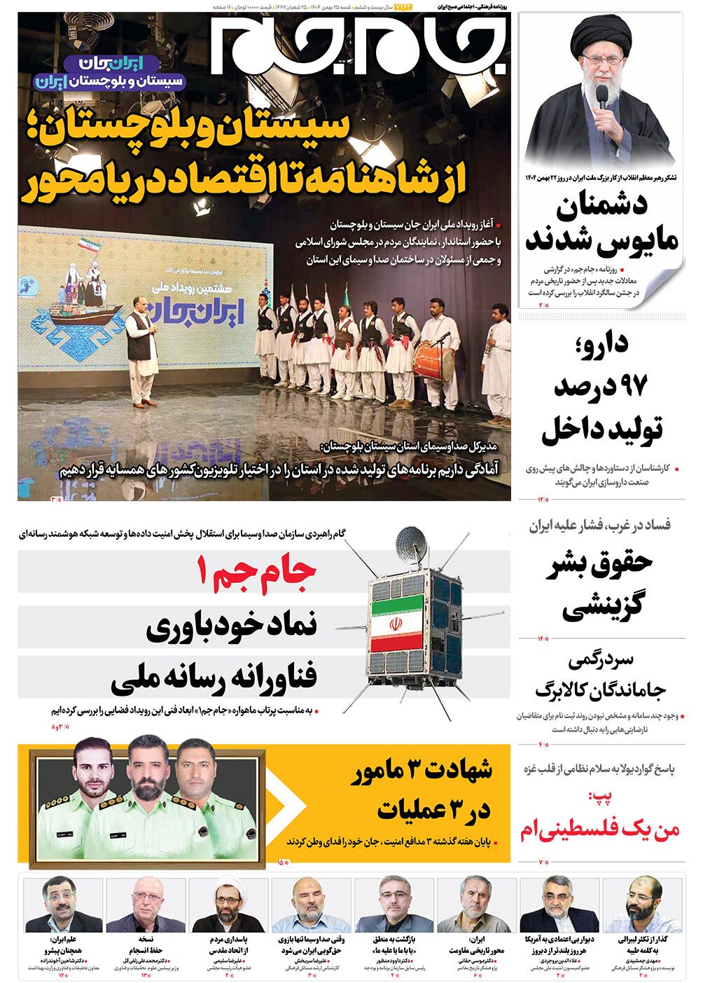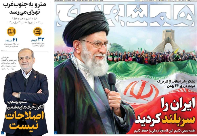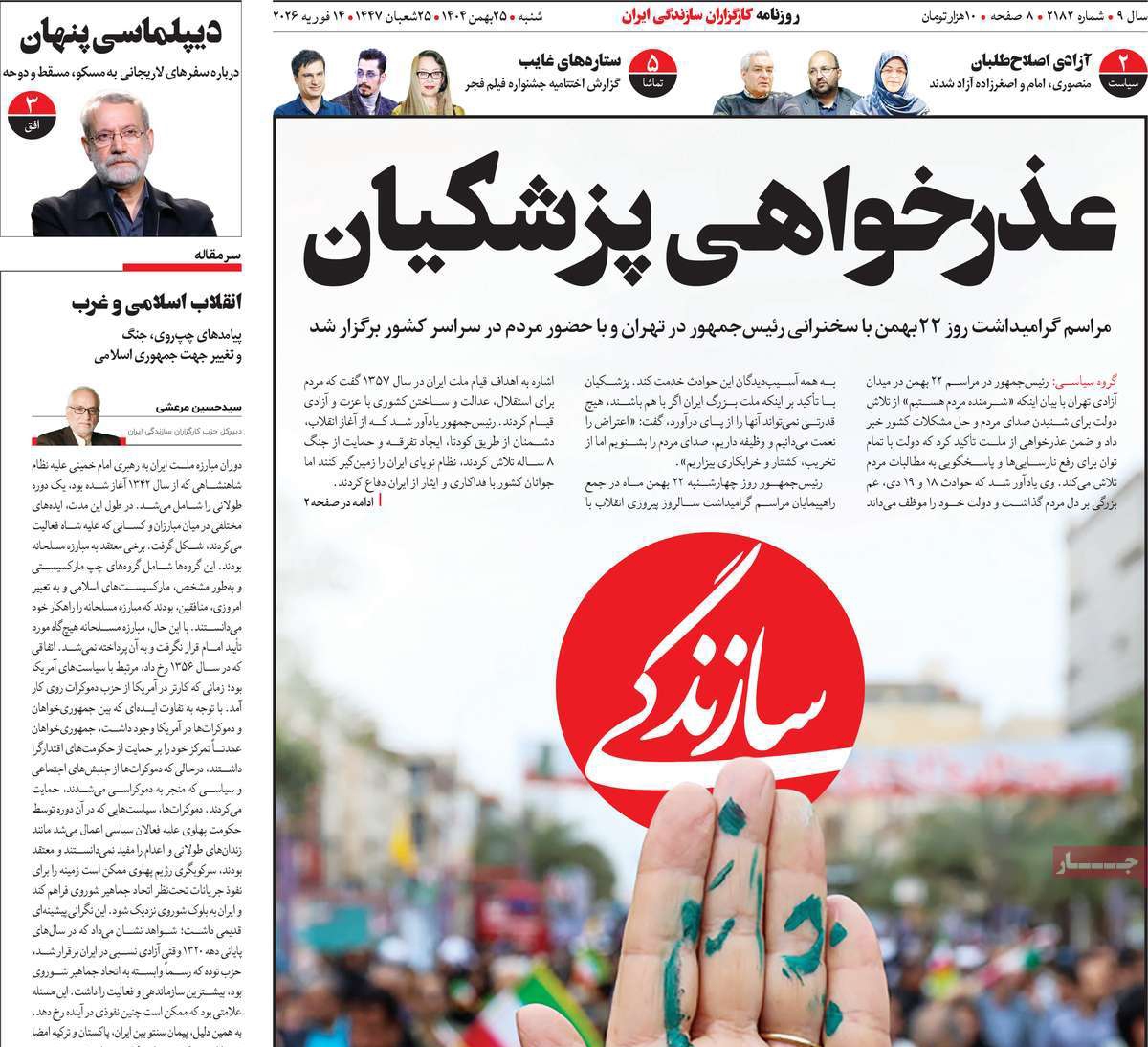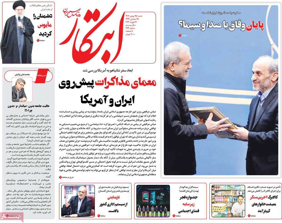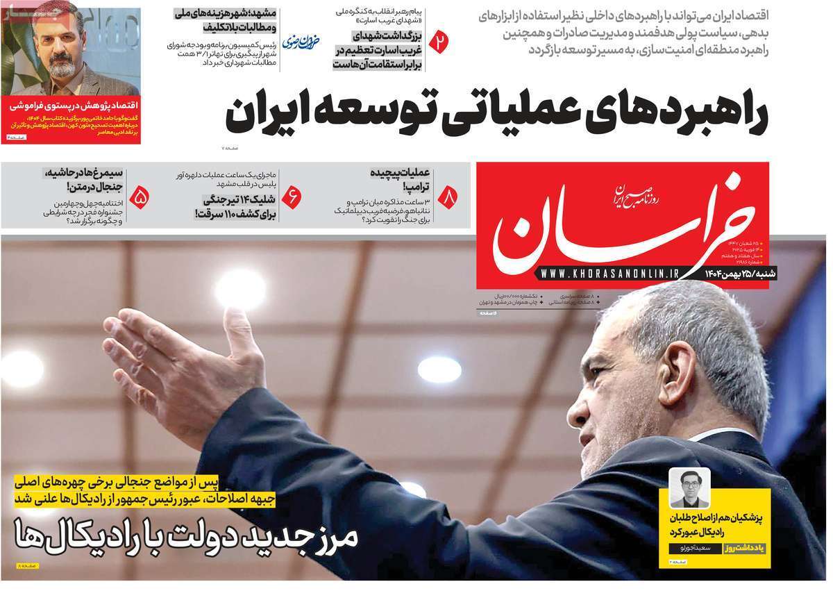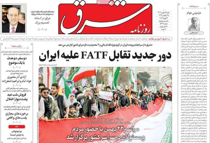 صفحات نخست روزنامه ها‌ی شنبه ۲۵ بهمن‌ماه