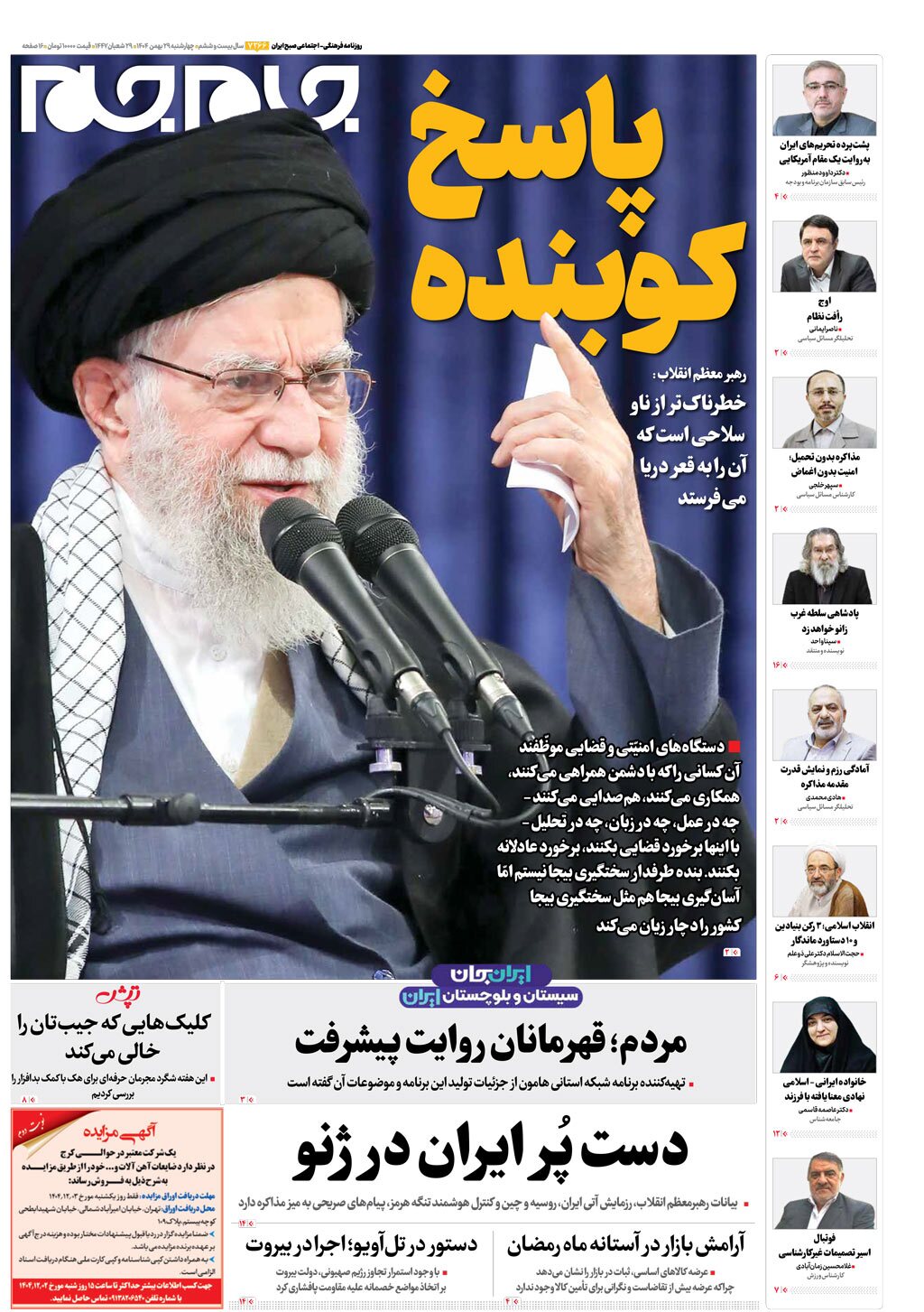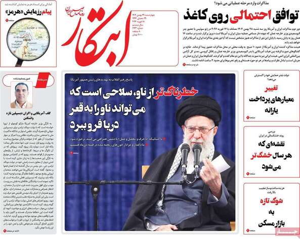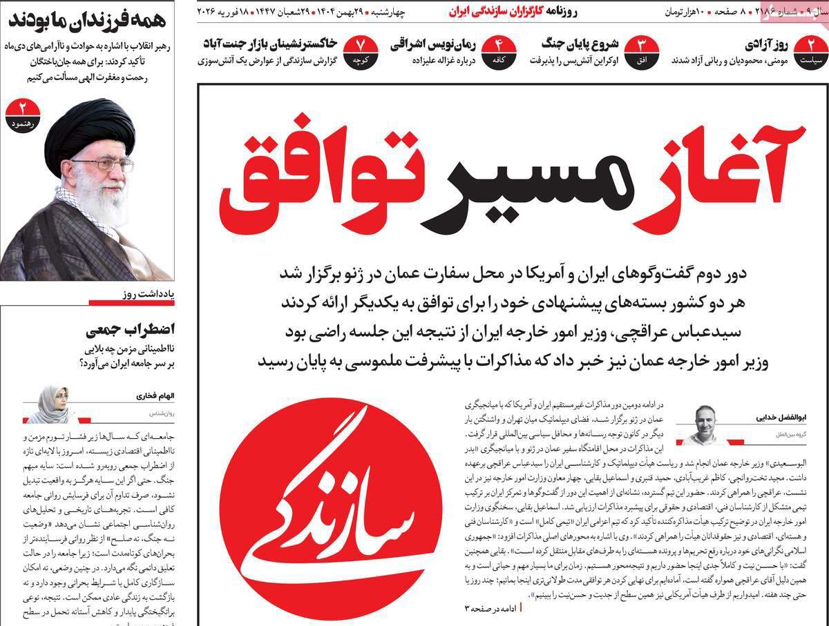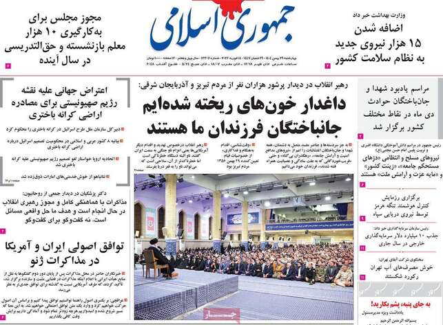 صفحات نخست روزنامه ها‌ی شنبه ۲۹ بهمن‌ماه