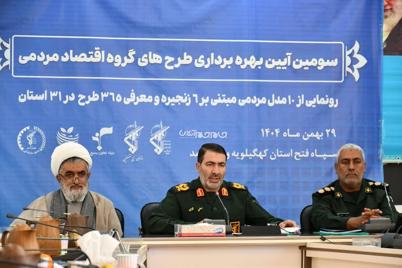 در ادامه، سردار مصطفی مثنوی، فرمانده سپاه فتح کهگیلویه و بویراحمد نیز اظهار کرد: همهساله به مناسبت ۲۹ بهمن، طرحهایی در قالب اقتصاد مردمی توسط بنیاد تعاون بسیج به بهرهبرداری میرسد و امروز سومین آیین افتتاح این پروژهها در سطح کشور و استان برگزار شد که کهگیلویه و بویراحمد جزو ۹ استان برتر کشور قرار گرفت.