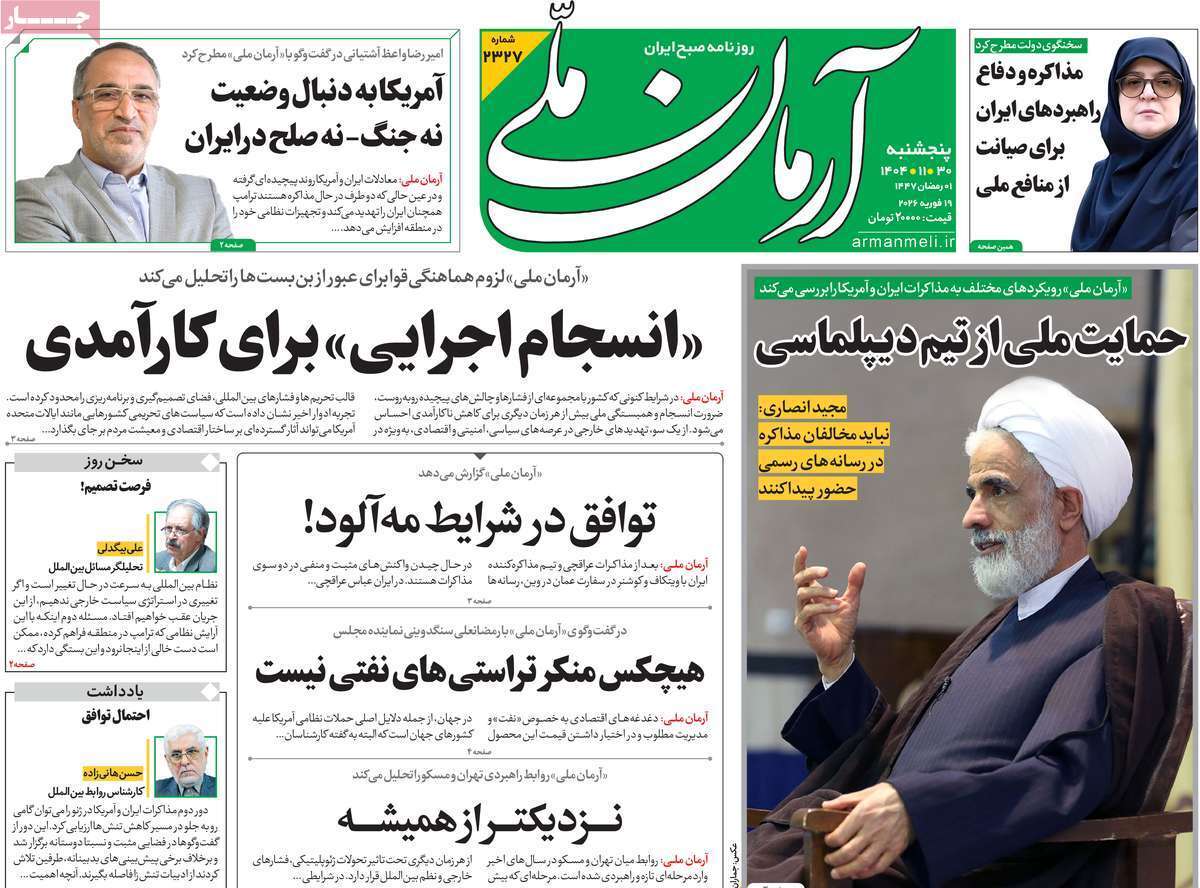 صفحات نخست روزنامه ها‌ی پنجشنبه ۳۰ بهمن‌ماه