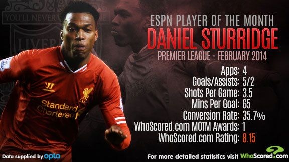 دانیل استاریج بازیکن لیورپول نیز به دلیل درخشش در لیگ برتر به عنوان یکی از سه بازیکن برتر ماه فوریه انتخاب شده است.
