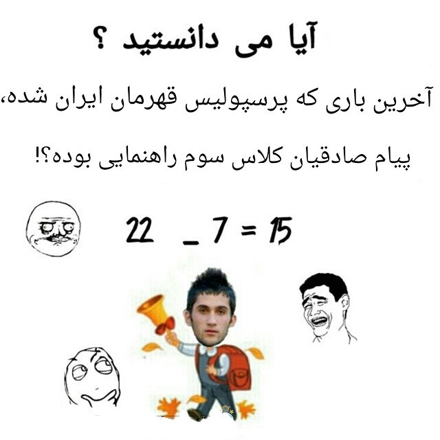 اقعیت تلخ اینکه در آخرین قهرمانی پرسپولیس، پیام صادقیان فقط 15 سال داشته و اگر طبق روال معمول کلاسهایش را گذرانده باشد، در آن سال کلاس سوم راهنمایی بوده!