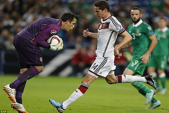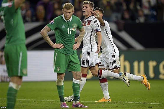 تک گل آلمانها توسط تونی کروس در دقیقه 71 به ثمر رسید و برای ایرلند جان اوشی در دقیقه 90 موفق به گلزنی شد. تصاویری از تساوی ناامید کننده آلمانی ها مقابل ایرلند را می بینید: