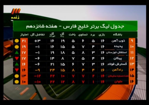 آماری از لیگ برتر + جدول لیگ: