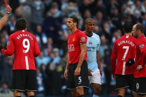 4- چهارمین کارت قرمزی که رونالدو با پیراهن منچستریونایتد گرفت در واقع آخرین کارت قرمز او با این تیم بود. این اتفاق در دیدار منچستریونایتد با رقیب همشهری یعنی منچسترسیتی افتاد. رونالدو در آن دیدار در نیمه نخست یک کارت زرد گرفته بود اما هنگامی که با دست توپ را از جلوی صورتش دفع کرد کارت دوم را گرفت و اخراج شد: