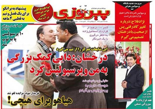 به گزارش جام جم ورزشی ، امروز قرار بود روز سرنوشت ساز پرسپولیس و استقلال باشد اما باز هم خبری نیست. برای این دو تیم مشتری پیدا نشد تا بحث واگذاری آن به بخش خصوصی فعلا منتفی شود. این در حالی است که هیاهوی بسیاری پیرامون واگذاری این دو باشگاه پرطرفدار به بخش خصوصی در رسانه ها به وجود آمده بود. اکثر روزنامه های ورزشی امروز به این موضوع پرداخته اند. تیترهایی همانند "هیاهو برای هیچی" ، "امروز هم سرخابی ها خصوصی نمی شوند" ، و "هیچ خریداری پا پیش نگذاشت" تیترهایی هستند که برخی از روزنامه های ورزشی در واکنش به این موضوع به کار برده اند. روزنامه گل نیز آشتی قریب الوقوع علی دایی و علی کریمی و واکنش دایی به این موضوع را تیتر نخست خود کرده است. روزنامه ایران ورزشی نیز با تیتر "پروفسور در مهد کودک پرسپولیس" به مربی گری برانکو در تیم سرخپوشان واکنش نشان داده است!