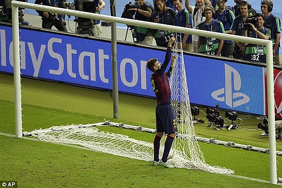 به گزارش جام جم ورزشی ، پس از پایان فینال لیگ قهرمانان اروپا و محرز شدن قهرمانی بارسا به دنبال پیروزی سه بر یک مقابل یووه ، جرارد پیکه مدافع بارسلونا شادی جالبی از خود نشان داد. او به طرف یکی از دروازه ها رفت، تور دروازه را کند و آن را روی شانه خود انداخت. او با این شادی منحصر به فرد یک یادگاری هم از فینال با خود به خانه برد. البته پس از پایان این دیدار پیکه به همراه پسر دو ساله اش نیز به شادی پرداخت.