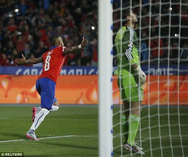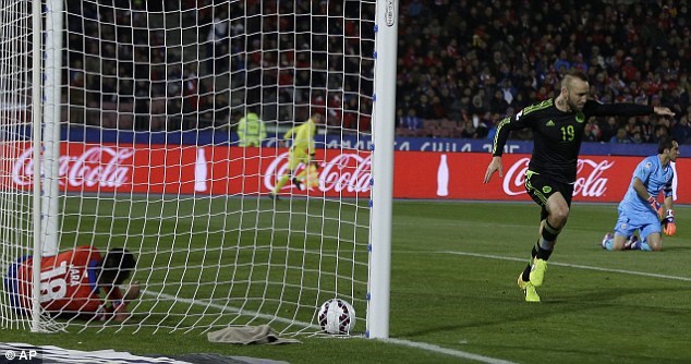 ویدال در دقیقه ۵۵ این دیدار پرافت و خیز گل برتری را از روی نقطه پنالتی وارد دروازه مکزیک کرد اما ووسو ۱۱ دقیقه بعد گل دوم خود و سوم مکزیک را به ثمر رساند. مکزیک با این تساوی دو امتیازی شد و در بازی بعد اگر اکوادور را نبرد از دور رقابتها کنار می رود.