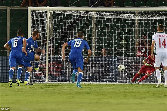 به گزارش جام جم ورزشی ،در گروه H مرحله مقدماتی یورو 2016 از ساعت 23 و 15 دقیقه در شهر پالرمو لاجوردی پوشان ایتالیا در ورزشگاه رنزو باربارا به مصاف بلغارستان رفتند و در حالی که مالک توپ و میدان بودند با یک گل به برتری رسیدند.
