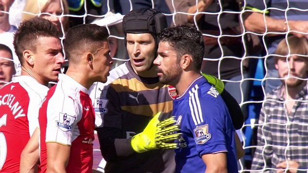 به گزارش جام جم ورزشی ، دیه گو کاستا در این مسابقه که با برتری دو بر صفر چلسی مقابل آرسنال همراه بود بعد از اینکه بر روی کوشیلنی مدافع آرسنال خطا کرد و مستحق اخراج بود اما داور بازی کارت زرد را به او نشان داد. پس از آن بازیکن جوان آرسنال گابریل وارد مشاجره لفظی با کاستا شد که در ابتدا داور کارت زرد را هم به او نشان داد ولی بعد از آن کاستا شروع به تحریک بازیکن جوان کرد و او را مجبور به زدن لگد به خودش کرد که در نهایت داور کارت زرد دوم را به او نشان داد و از بازی اخراج شد.