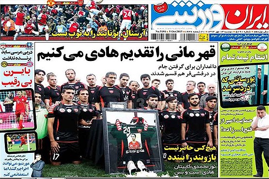 به گزارش جام جم ورزشی ، شکایت قلعه نویی از عوامل سازنده مستند ناصر حجازی موضوع قابل توجه امروز روزنامه های ورزشی است. اما تکذیب همسر هادی نوروزی درباره اینکه گفته می شود در مراسم تشییع پیکر هادی عدد شش را به استقلالی ها نشان داده است نیز تیتر برخی از روزنامه هاست. همسر هادی نوروزی در گفت و گو بار روزنامه گل جزئیات ایست قلبی هادی را تشریح می کند و می گوید هادی وقتی جان داد "هانا" (دختر یک ساله کاپیتان فقید پرسپولیس) روی سینه اش بود.