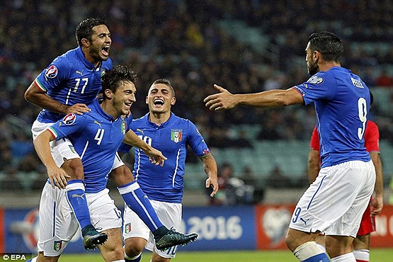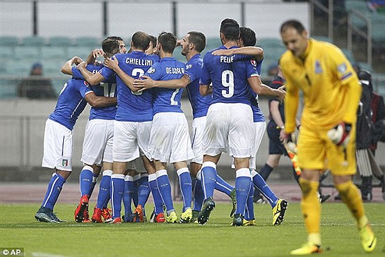 به گزارش جام جم ورزشی ، تیم ملی ایتالیا دیشب موفق شد با برتری 3-1 در زمین آذربایجان، 21 امتیازی شده و صعودش به دور نهایی یورو 2016 فرانسه را حتمی کند. ایتالیا در شرایطی به مصاف آذربایجان در باکو آمده بود که برای حتمی کردن صعود خود، تنها به یک برد نیاز داشت. ادر در دقیقه 11 ، الشعراوی در دقیقه 42 و دارمیان در دقیقه 63 گل های ایتالیا را زدند و تک گل آذربایجانی ها را هم نظرف در دقیقه 31 به ثمر رساند.