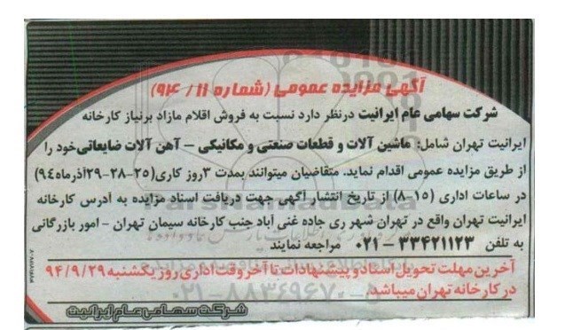 براساس اخبار رسیده از اوضاع و احوال کارخانه ایرانیت در تهران و اصفهان، مسئولین شرکت بدون برگزاری مزایده قانونی، اقدام به فروش برخی از دستگاه‌ها و تأسیسات زیربنایی شرکت به پیمانکاران ضایعات نموده‌اند، در حالی که این شرکت سهامی عام بوده و در فروش سلیقه‌ای اموال کارخانه منع قانونی وجود دارد.
