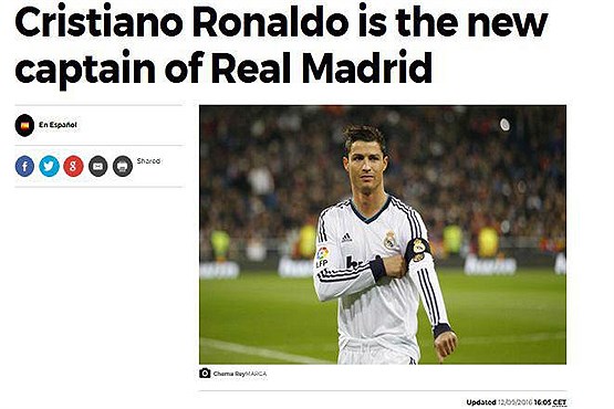 البته سرخیو راموس کاپیتان اصلی رئال مادرید است و ممکن است رونالدو کاپیتان دوم باشد اما موضوع کاپیتان شدن او در ترکیب قوهای سپید مادرید بسیار مورد توجه قرار گرفته است.
