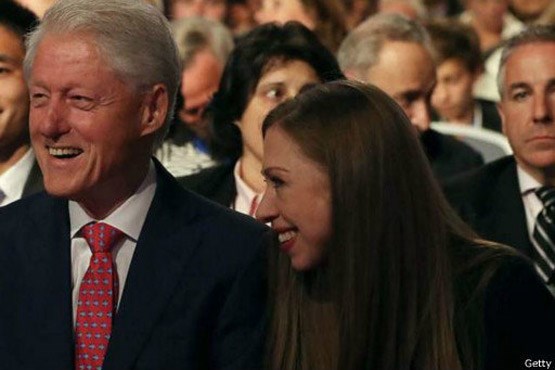 بیل کلینتون و چلسی دخترش در حین تماشای مناظره